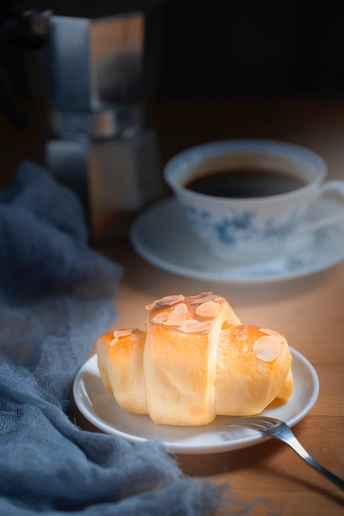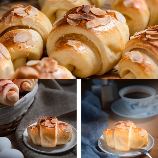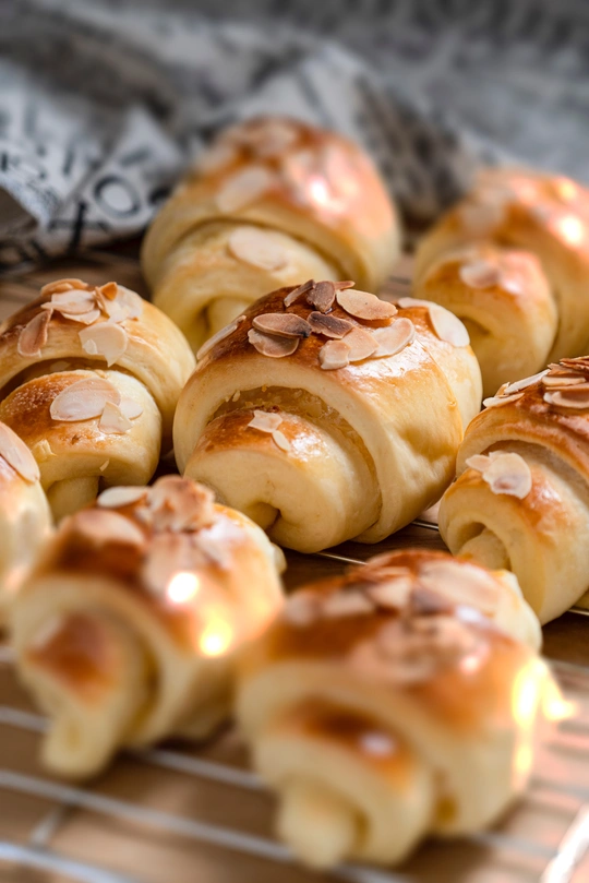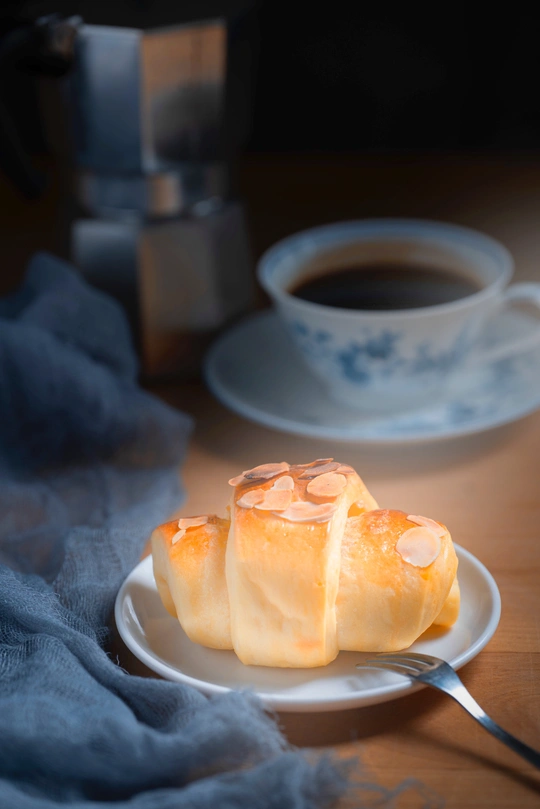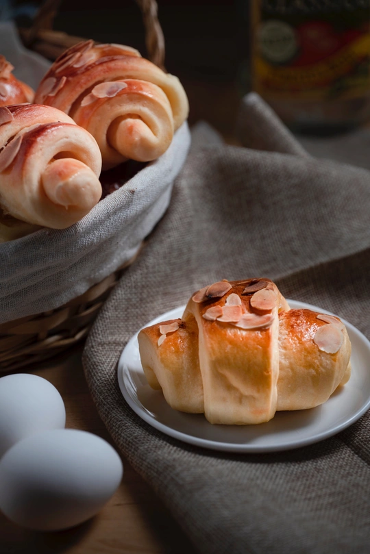 虽然自制的面包形状大小不一,但经过有序排列加上灯光的明暗对比,拍出的照片还是蛮好看的。
