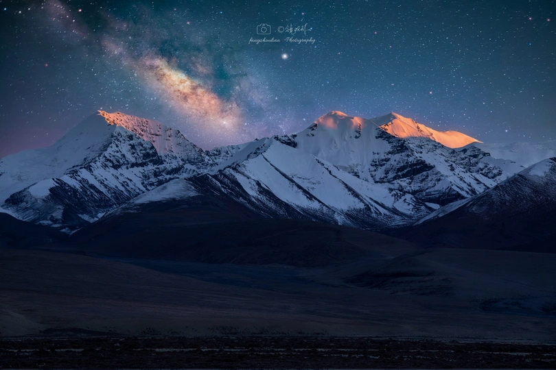 本来是赶夜路,在一座不知名雪山脚下看到这一幕的时候仿佛忘记了时间