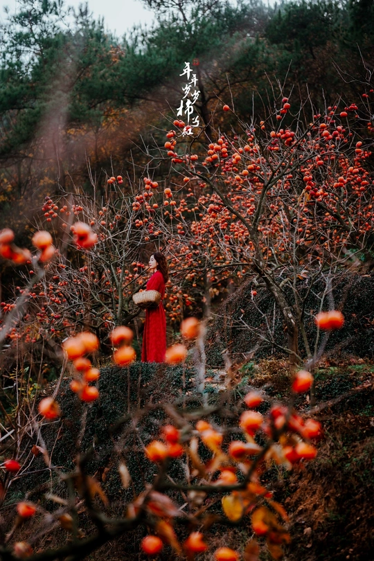 初冬的时节,万物凋零,满山的柿子却分外妖娆