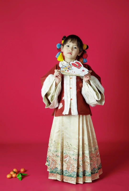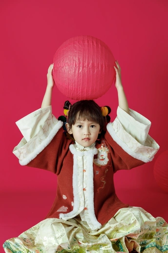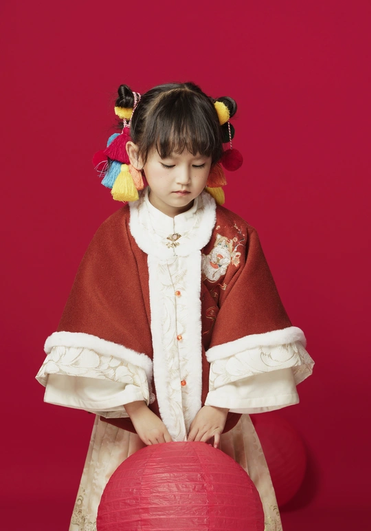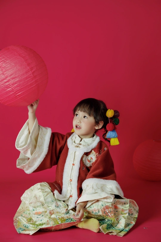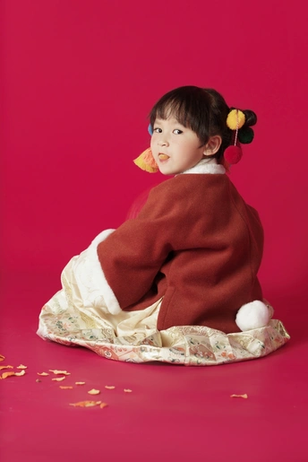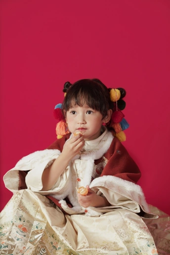 这是一组新年主题的棚拍儿童照,口罩当下,结合PANTONE新发布的2023年度流行色,最适合不过了