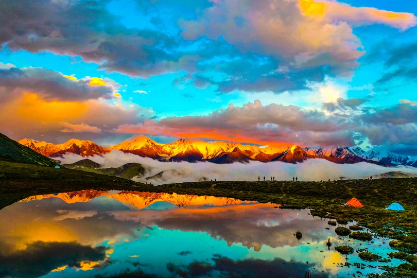 贡嘎山(Gongga Shan),又叫岷雅贡嘎(Minya Konka),位于四川省康定以南,是大雪山的主峰。周围有海拔6000米以上的山峰45座,主峰更耸立于群峰之巅,海拔7556米,高出其东侧大渡河6000米,是四川省最高的山峰,被称为“蜀山之王”,为国家级风景名胜区。