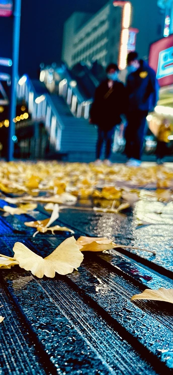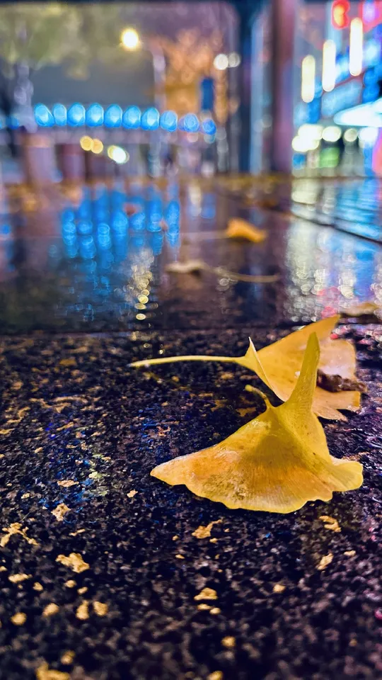 小雨后路边银杏