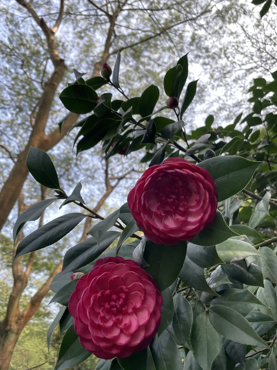 这茶花盛开着 尤似一朵冷艳玫瑰
