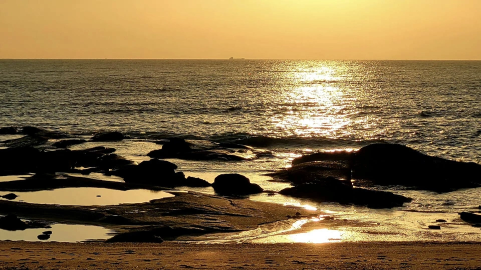 侧影^setting sun 日落🌆 time.海面 yellow.