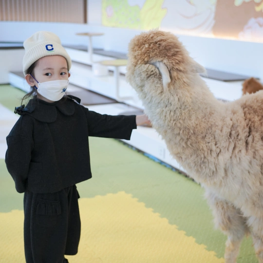 位于798里的撸宠物的农场 动物比之前少了一些 狗博美比较多 一头羊驼,两只猫 亲子票近300 性价比很一般