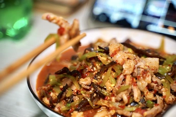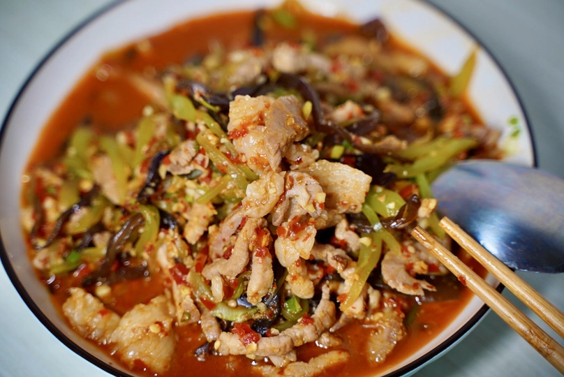 鱼香肉丝 菜包肉 青椒炒肉 凉拌白肉 辣椒灌肉