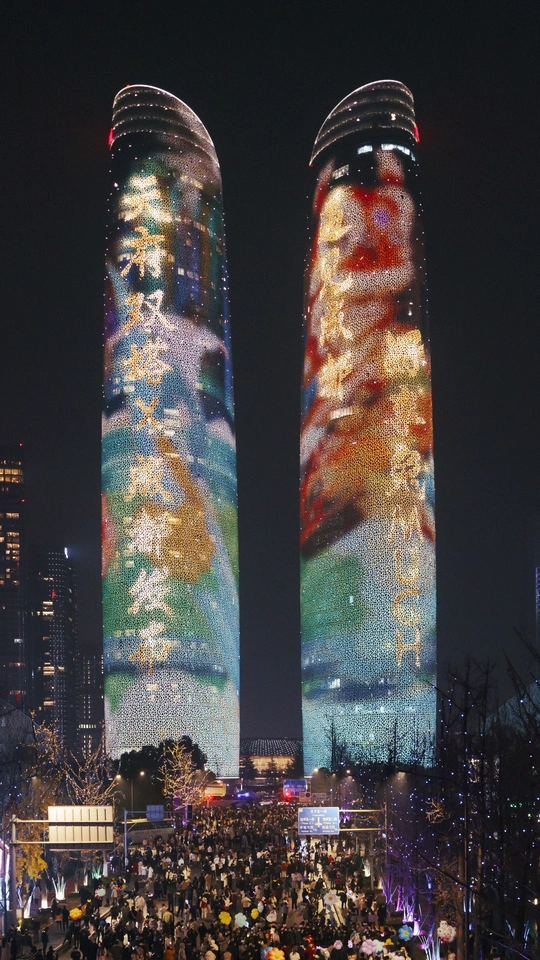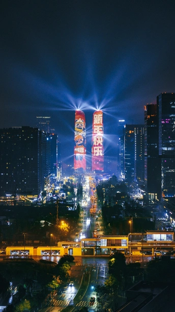 双子塔灯光秀