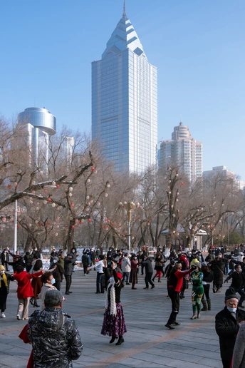 阳光撒在冬日的人民公园上,公园中人们载歌载舞,好不热闹