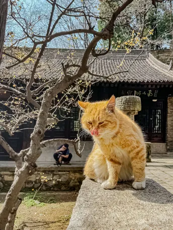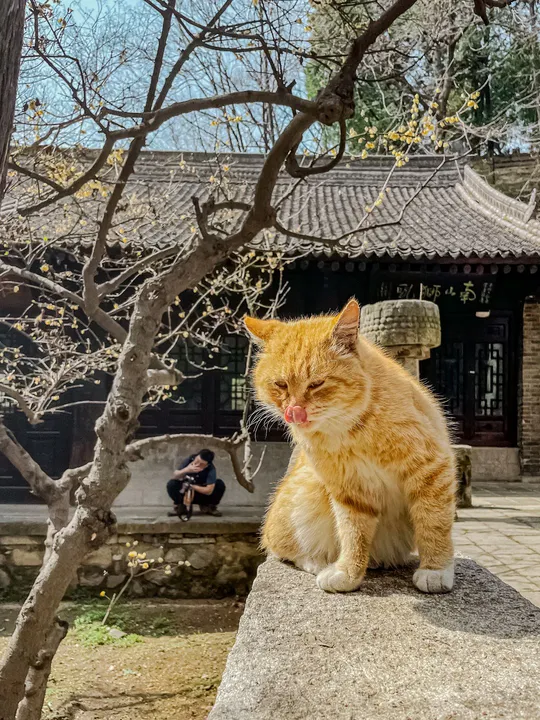 隐藏在秦岭里面的这座千年古寺净业寺,除去游玩以外,还是一座拥有很多萌宠的寺庙:有大大小小的六七只猫,橘猫和小黑猫都有,喜欢猫的朋友们强烈推荐[嘻嘻][嘻嘻][嘻嘻] 正在吐舌头的小橘猫🐈