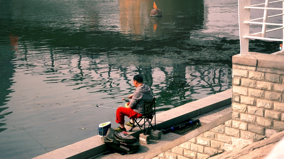 秋天的海河边 垂钓者也是一条靓丽的风景线