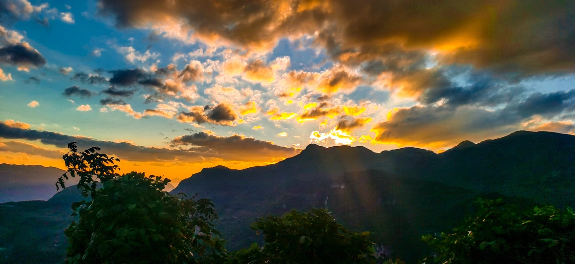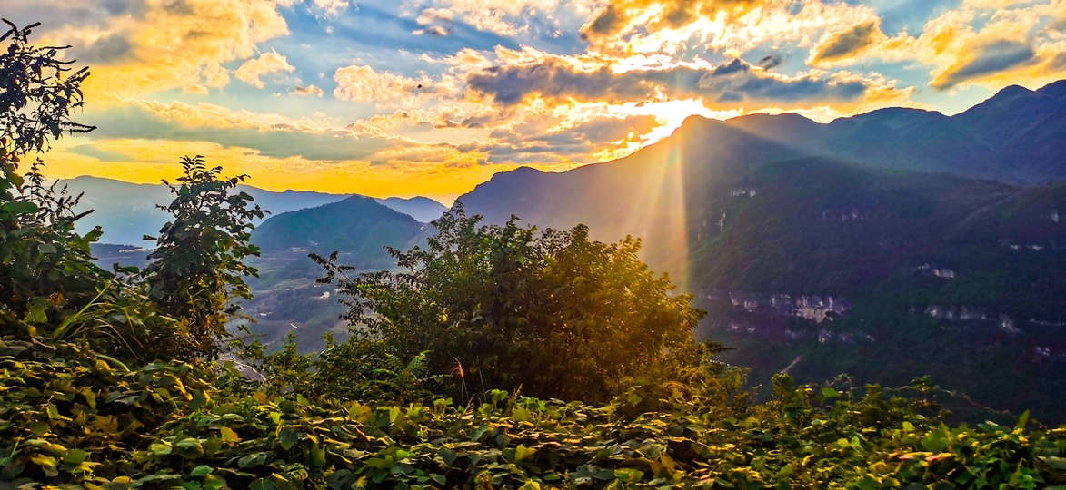 武隆仙女山,位于武陵山区,每当夕阳西下的时候,落日的霞光散发出万丈光芒。