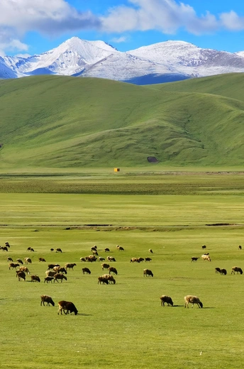 拍摄于巴音布鲁克沿途,窗外,成群的牛羊在草地上吃草,远处是连绵的青山,青山后又是雪山,眼前的景色就像一幅画般,让人忍不住用手机记录下这美好的画面。