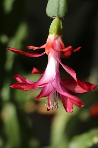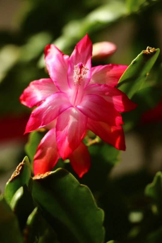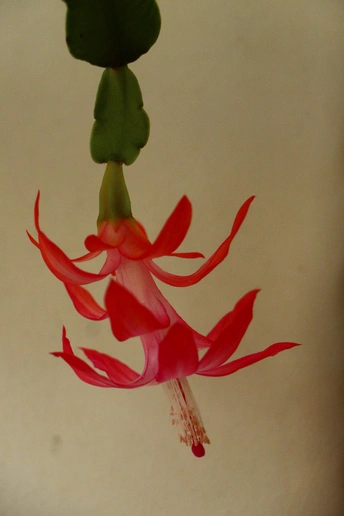 仙人指(学名:Schlumbergera bridgesii (Lem.) Loefgr.) 是仙人掌科仙人指属植物,附生类常绿草本,其扁平的变态攀苯节相联成枝,变态萃片长2.5-5厘米,宽1-2.5厘米,浅绿色。 花蕾从第二节变态茎长出,因其变态摹形似指甲,故名仙人指。 成年植株12月从枝顶变态茎着生花薷,翌年1-3月开放,花筒长3.5-4.5厘米,有花瓣16-18片。 2月是其盛花期。 原产于南美巴西、玻利维亚。仙人指为短日照植物,宜处于半阴环境,防强日直射。喜温暖,但忌高温