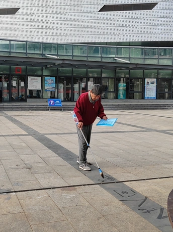 老大爷在写毛笔字