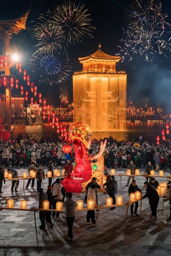 年味十足的板龙灯年俗表演 远处的金阁飞瀑 十分震撼 @米拍小助手 @米拍活动呆呆兽 @米拍摄影学院 @米拍社长 @米拍