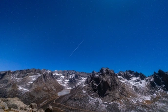 拍摄于2022年12月12号,双子座流星雨极大值头一天,跟好友一起露营在莲宝叶则,忍着零下8°的气温,4700米左右的海拔,通宵拍摄,抓到了一颗正好划过扎尕尔措上空的流星