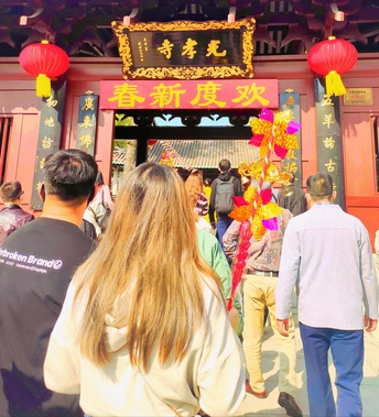 1~7 张 摄于 2023 年, 8~ 20 张 摄于 2022年。 2023年,大家更容易相聚,逛花市,初一拜神,热闹了许多。 第一张和第二张照片是兔年小年花市,大家会购买春联年花作为年货,还有小朋友喜欢的糖画摊子,右下方有一双渴望的大眼睛。 第三、四、五、七张照片是兔年初一的大佛寺和天主教堂。年初一拜神佛,买风车寓意时来运转,求个好意头。 第六张照片是兔年新年时刚开通的地铁站,摆上年花,喜庆春节新开始。 第八、十、十一、十二张照片是虎年春节时的麓湖,荔湾湖,流花湖和白云山,虽然装饰浓浓年味,毕竟游人少,略显冷清。 第九、十三、十四、十五、十六、十七、十八张照片是虎年春节荔湾湖附近的居民区和店铺,游人是少,年味还是那么浓,大家都尽力給自己的生活注入一些喜庆。 第十九、二十张照片是虎年和兔年一户人家的春联,乍一看都一样是黑门白墙红春联,再一看春联祝福的更替诉说岁月的流逝。 回想2022年,没有花市,不允许大型聚集,大家还是用心地布置,虽然有点冷清,新年氛围仍有温暖。