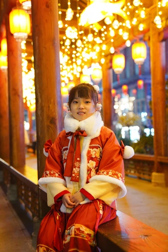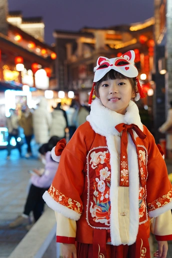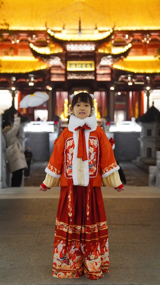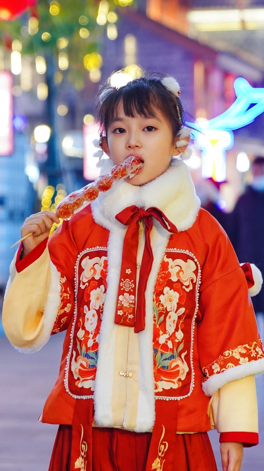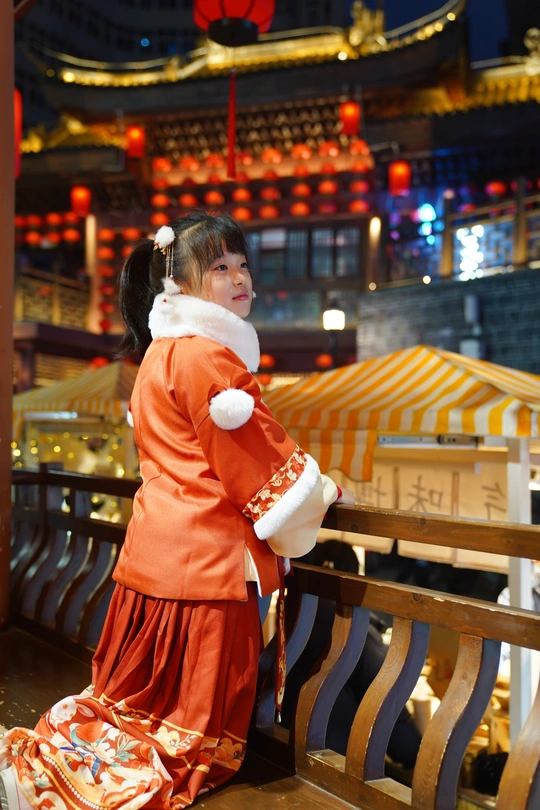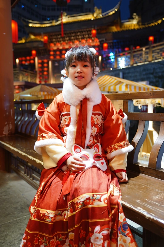 临出门前几天火速买的冬款加厚汉服,满足一下苏瑶心心念念的臭美小心思。她太喜欢汉服了,春夏秋冬的都喜欢,这次是第一次拍冬款的。晚上夜景好,但确实有些凉。她妈大包小包的提溜着,不停的给她穿衣服脱衣服再穿衣服,忙的呼哧呼哧的。我要不拍出来点啥压力真的好大~[捂脸][破涕为笑]晚上人多,光线也复杂,实在是很难很难取景,只能硬着头皮找位置找角度拍一些。新年新气象,愿她也如这红火喜庆的灯光与华服,在新的一年能收获更多的开心与美好。
