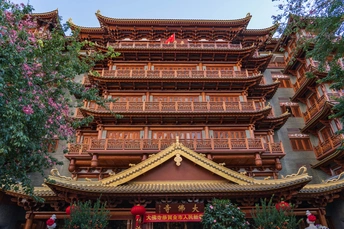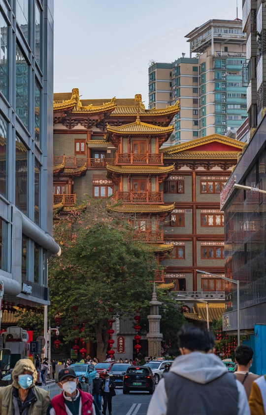 广州大佛古寺,位于北京路繁华步行街上,没有山门,直面就是天王殿,比较推荐晚上观赏,附近交通和美食都挺方便,值得一逛。