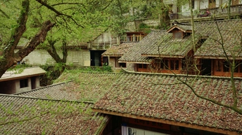 春天树木老房落叶