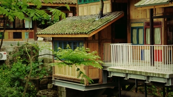 这里树木枝繁叶茂,树大根生,老房子和它相依相偎,意境满满。