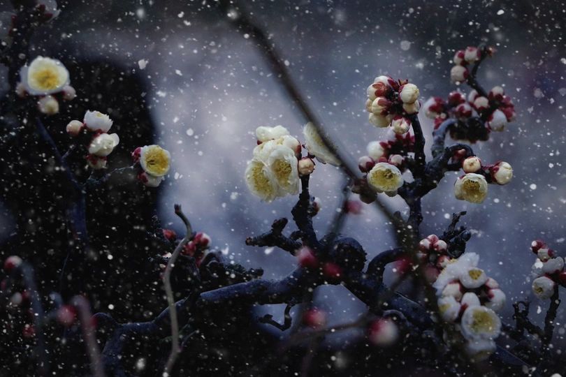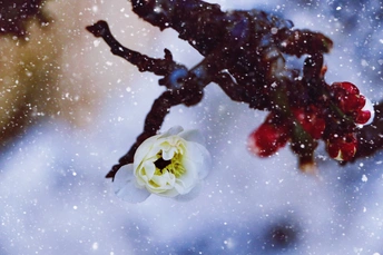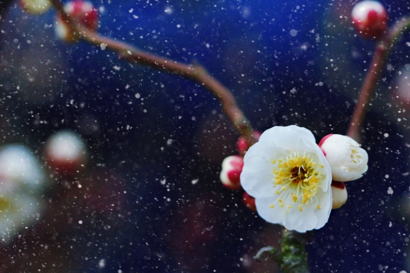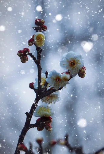梅雪争春未肯降, 骚人阁笔费评章。 梅须逊雪三分白, 雪却输梅一段香。