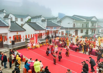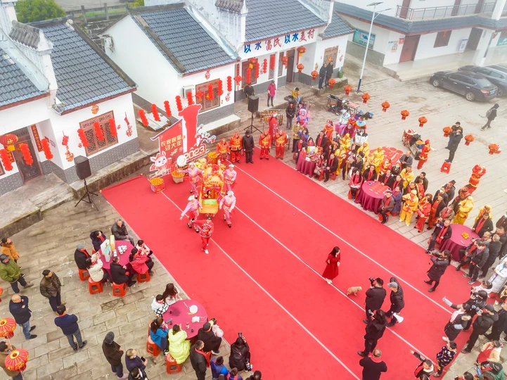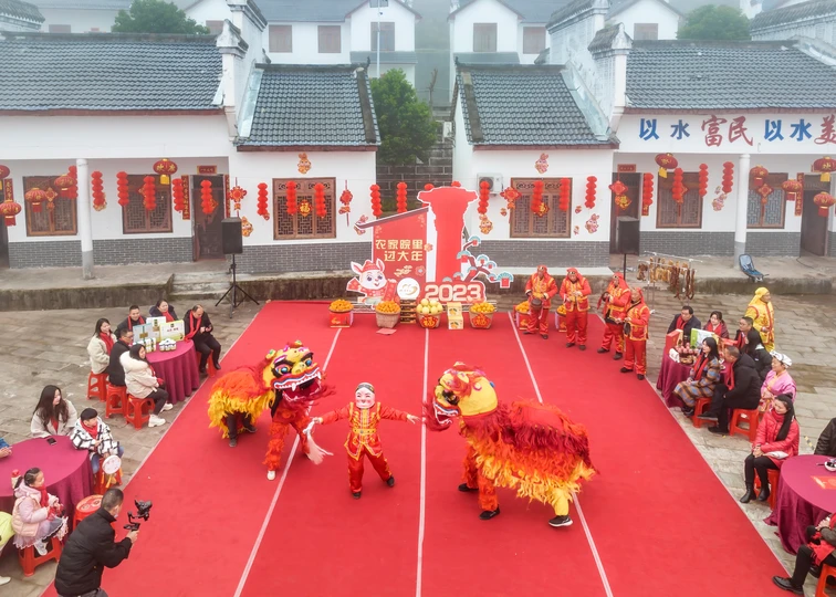 2023年新年将至,渠县万寿镇灵感村好热闹,村民聚在家门口一起欣赏舞狮、腰鼓、高跷、抬总爷、花花船、车幺妹等民俗表演。
