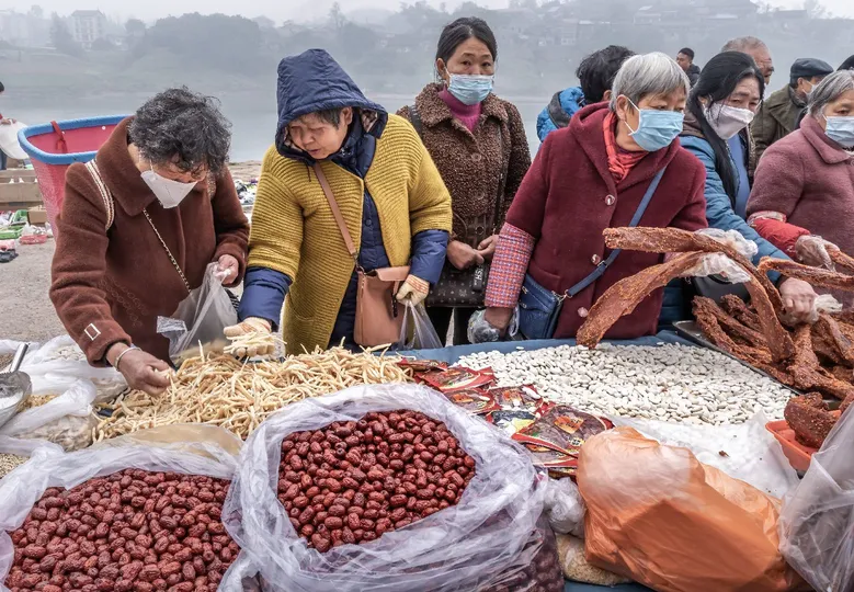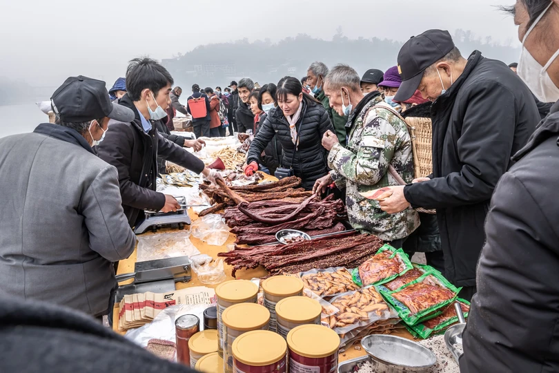 腊月里的渠县三汇镇农贸市场非常热闹,人们从四面八方赶来购买各种年货。