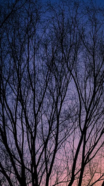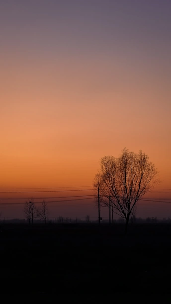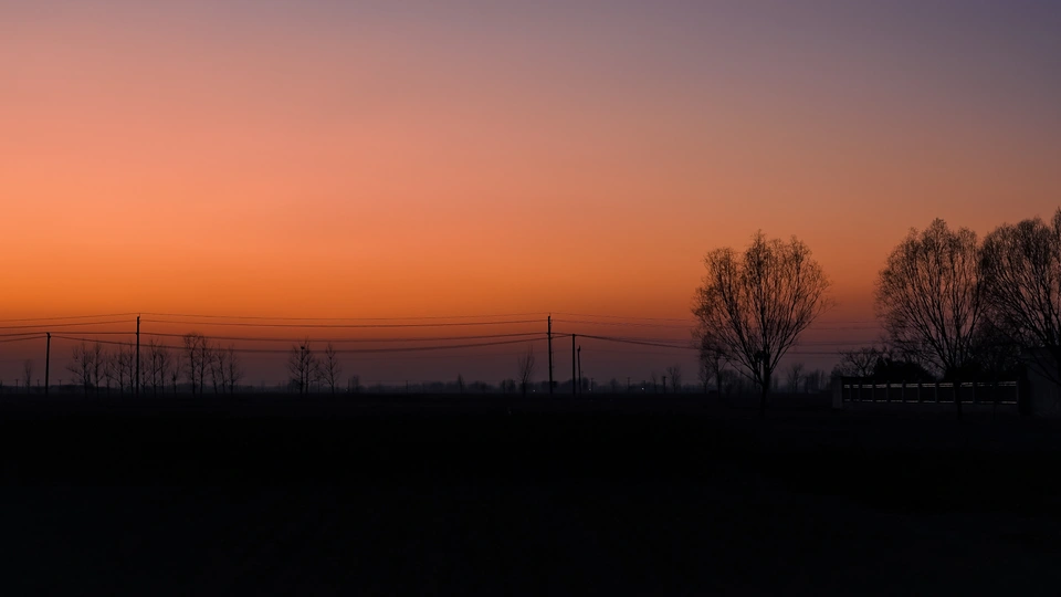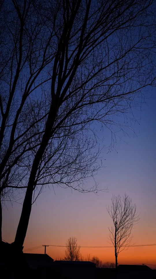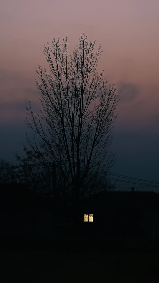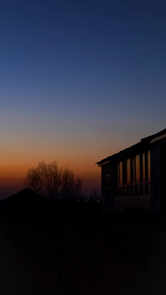 2023年1月春节期间摄于菏泽,落日余晖笼罩着乡野,树影婆娑,是静谧的心安之地