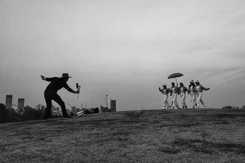 抢眼的摄影师给大妈拍视频,丰富多彩的退休生活。