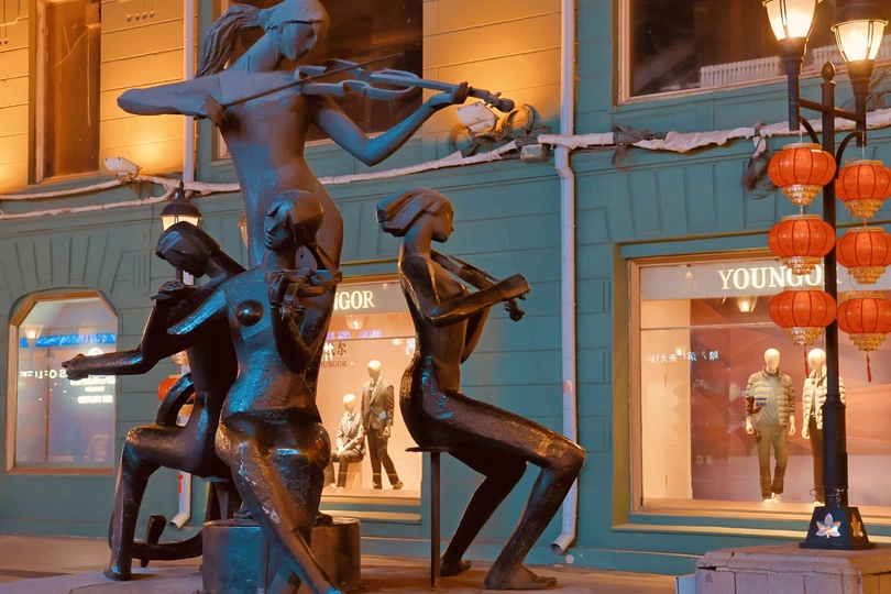 冰糖葫芦&冰灯+圣索菲亚大教堂&中央大街=极具俄式氛围的哈尔滨春节! 中央大街是黑龙江省哈尔滨市很繁盛的一条商业步行街,位于哈尔滨道里区,北起江畔的防洪纪念塔广场,南接新阳广场,长1400米。这条长街始建于1900年,街道建筑包罗了文艺复兴,巴洛克等多种风格的建筑71栋。 中央大街旧称中国大街,是哈尔滨西洋风情的所在。这条大街的形成,要追溯到1898年。当年,哈尔滨开始大规模地修筑铁路和城市建设,原沿江地段是古河道,尽是荒凉低洼的草甸子,运送铁路器材的马车在泥泞中开出一条土道,于是中东铁路工程局将沿江荒地拨给散居哈尔滨的中国人,至1900年即形成“中国大街”意为中国人住的大街。