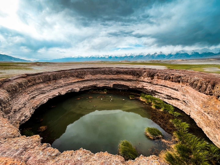 木吉火山口位於新疆帕米爾高原上,坐落在絲綢古道旁的休眠火山口,被稱爲“冰與火的暗影之地”。數千年前,木吉火山口曾活躍噴發,商人和遊客曾目睹濃煙籠罩着白色冰川,遠看模糊而神聖,因絲綢之路開發繁榮而得名。如今,這座火山又恢復了平靜,只有平靜的湖水才能講述它古老的冰與火的故事。