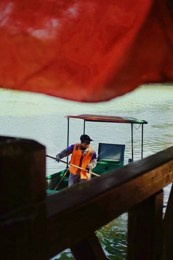 如名字所说,这张照片是风送给我的礼物,焦点定格,湖面上拂来的风吹起了栏杆上的旗帜,轻悠飘入镜头,送给我我这张照片🚩