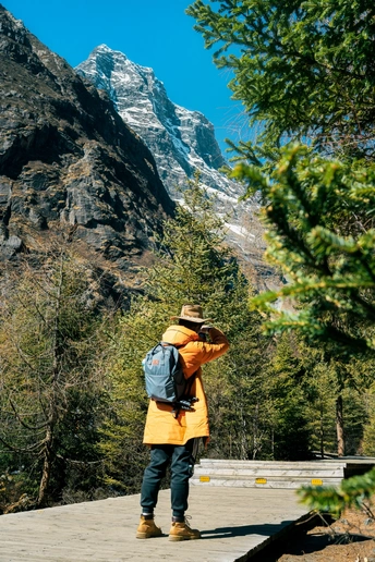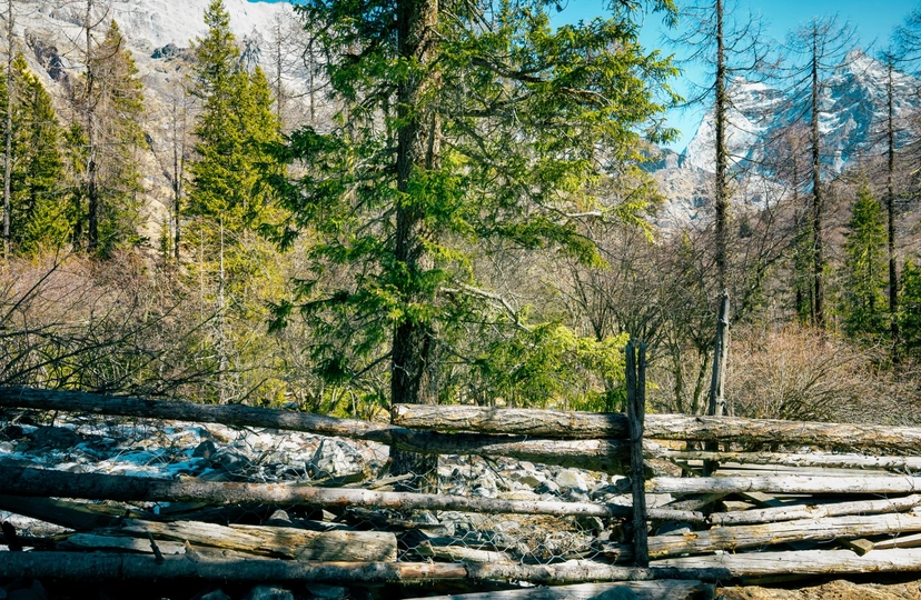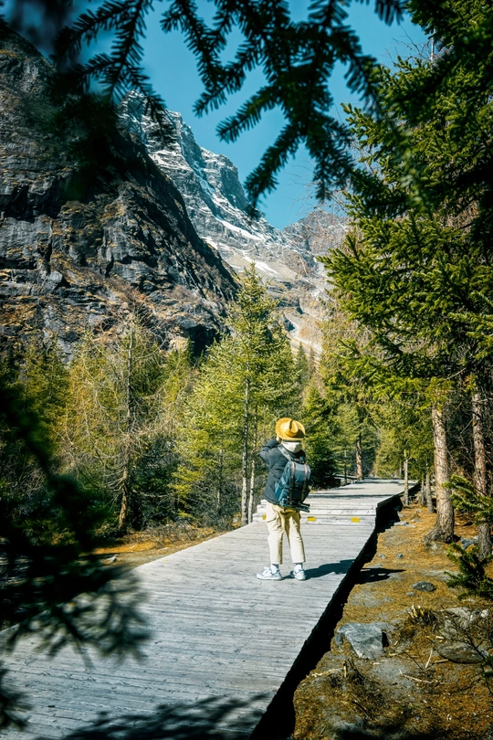 位于四姑娘山景区山顶的红杉林,当你放慢脚步走在森林中,看到阳光穿过树梢,雪山在层层树枝身后,这一刻才能感受到自然的亲切