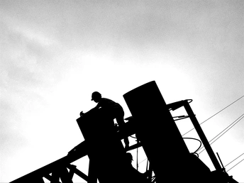 大桥建设中,测量队的兄弟爬上高处放线,其动作就像是给大炮筒装填弹药一般。