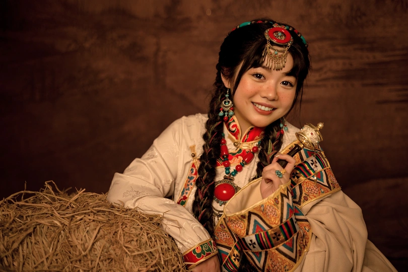 这样的女孩不知道丁真会喜欢吗?藏族少女少女写真迷人的藏族少女民族风摄影 当当当!满满杂志风的藏族写真来了,各位小仙女们快来康康吧! 藏族的浓烈夺目得让人欢喜,好看的藏族照不用去西 藏就能完成,在室内也能收获那份虔诚和神圣的美照。 啦 民族特色高原妆容:藏族少女的妆容精髓在于腮红,加深一点 更有原生态的感觉哦!再来点 小雀斑,异域风情满满!虽然前期看起来有点脏脏的,但这样的妆容才更出片哦~ 特色藏族服饰:藏族服饰真的超级好看,浓烈的色彩带来视觉上的冲击,繁复的古老花纹却给人一种最纯粹的感受,在加上绿色宝石配饰,和毛茸茸的羊毡帽,妥妥的一枚藏族美女! 整体设计:纯黑色背景更加突出人物形象,简单又大方。暖色光(线均匀地铺在人物脸上,柔和中又有一种坚毅的力量感。发型是特色小脏辫,和五颜六色的发带编织在一块,超级戳中少女心! 拍摄动作:简单自然就好。正对镜头,用小风扇吹起。两边的碎发,好看又自然。觉得不知道做什么动需作。可以搭配 一些小道具,画面会呈现出很好的故事感。美美的藏族照,小姐姐们值得拥有哦!