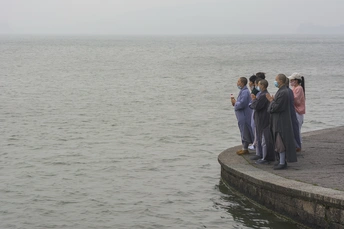 《祈福》拍摄于2022年3月14日杭州西湖白堤。来自杭州桐庐某寺院的一群僧人与信众,来到杭州西湖白堤,念《大悲咒》祈福天下平安,疫情早日结束。