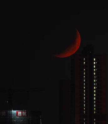 在夜里12点阳台透气的时候偶然间看到一轮红色的新月落入地平线