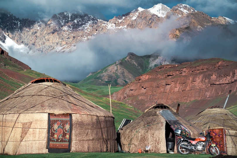 拍摄于中国最西的边境草原——玉其塔什;一夜大雨之后,清晨终于得见云层之后的边境雪山