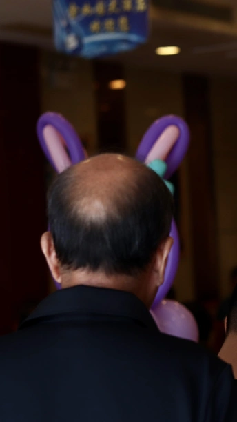 小侄女生日上抓拍到的兔耳朵爷爷。