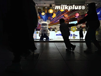 看到米奇散发出的魅力。小男孩拉着妈妈要直扑米奇的怀抱。