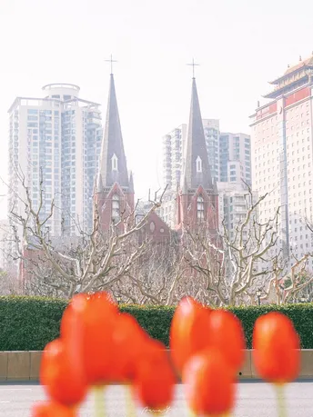 上海徐家汇的花坛种满了橙红色郁金香 收获了第一波春天 从2号口出就有花,一路走到天主教堂,还可以逛逛徐家汇书院
