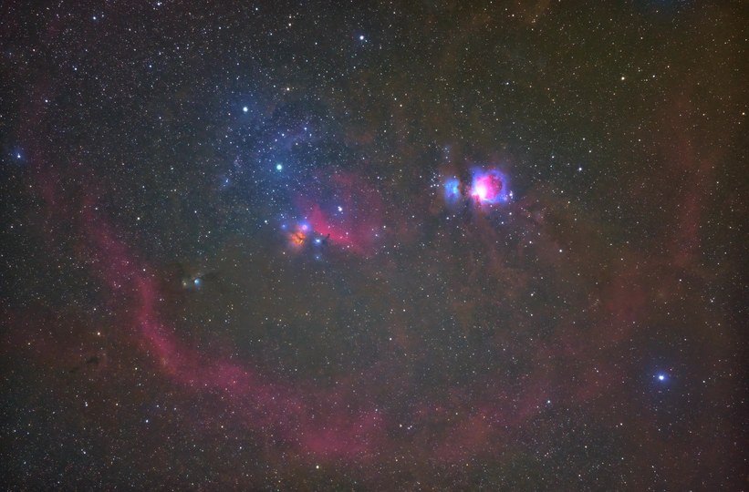 萌新第一次拍摄星座广域图 使用尼康85F1.8 曝光1h 3-4级光害区 无BCF改机 开始拍摄前不小心踹了三脚架一脚,导致跟着有问题
