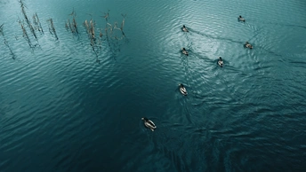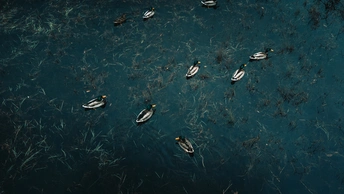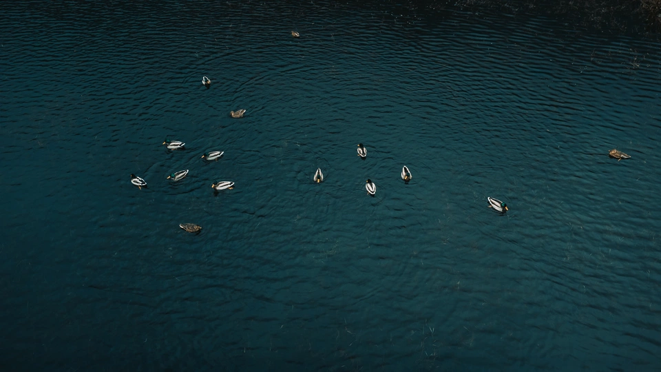 无人机飞出去拍大景,无意中发现一群鸟飞过,飞进一看,路上是一群野生的绿头鸭,嬉戏打闹着,用无人机赶了一波鸭子? ?:四川龙池国家森林公园 @米拍 @米拍