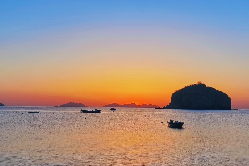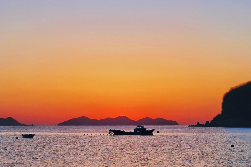 大连棒棰岛的海上日出