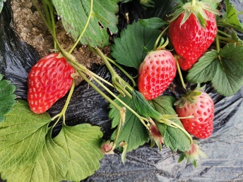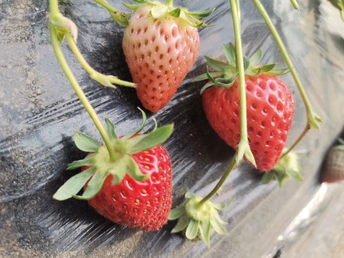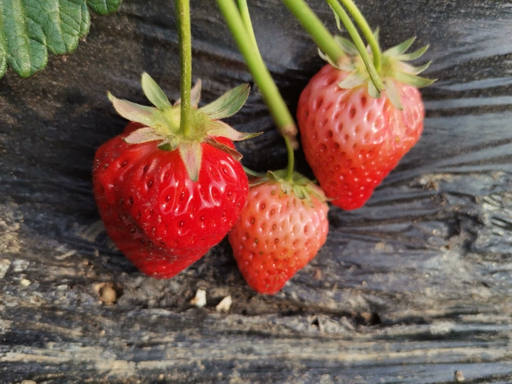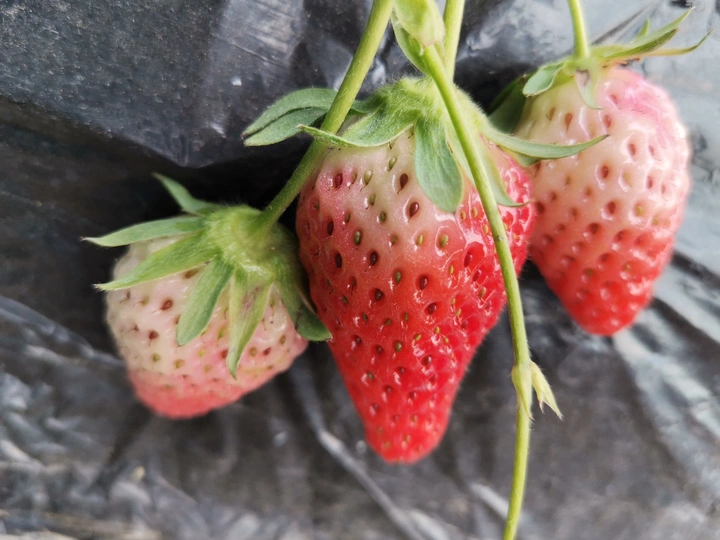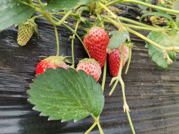 眼下,正是吃草莓的最好时候! 青岛西海岸新区八零小伙家庭农场占地420亩,建有果蔬大棚45个。走进草莓大棚,香甜的气息扑面而来。簇簇绿叶间点缀着一颗颗鲜红欲滴的草莓,清甜的天使8号、软糯奶香的甜宝、浓郁多汁的红颜......颗颗果实圆润饱满、色泽鲜艳,十分惹人喜爱,小伙伴们可以尽情享受这“莓”好时光啦!