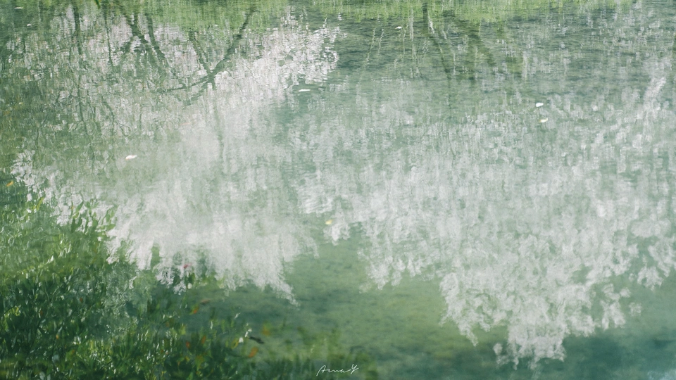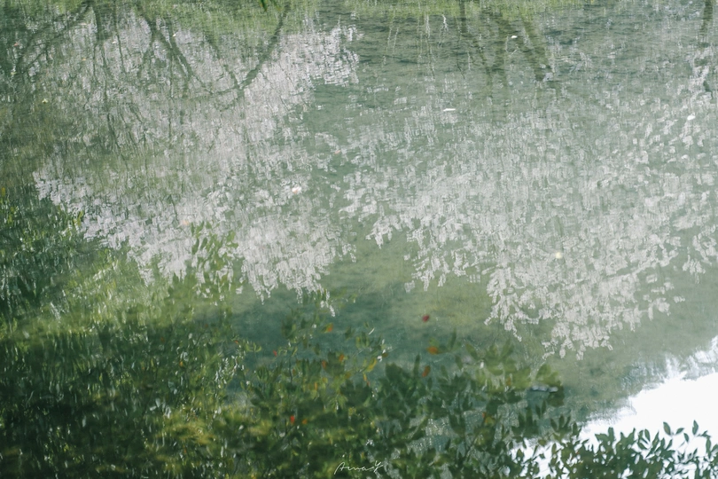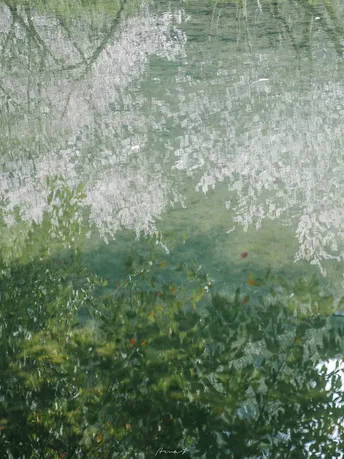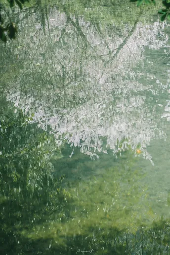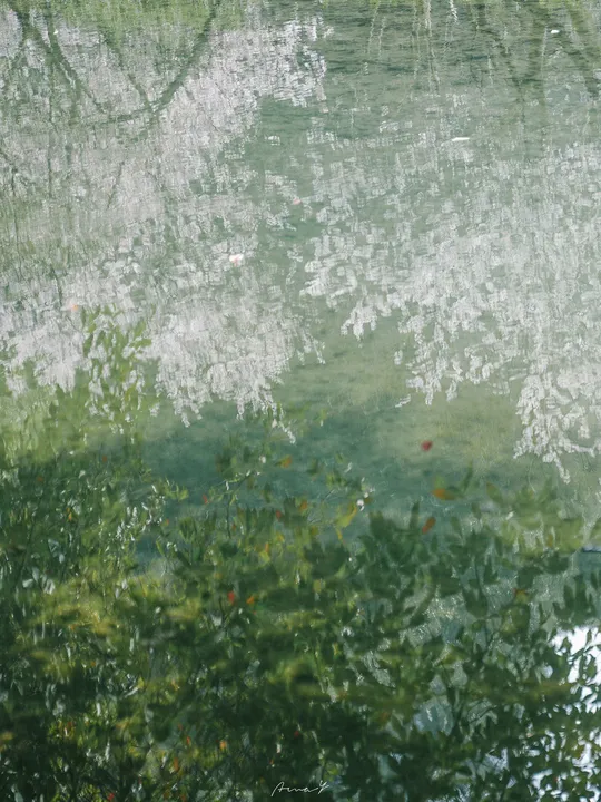 摄于上周五杭州九溪烟树 小岛上的早樱开了,有点远没有合适角度拍,就拍了水里的倒影,一秒Get油画风春天。
