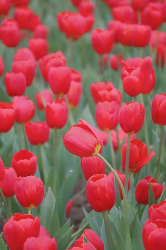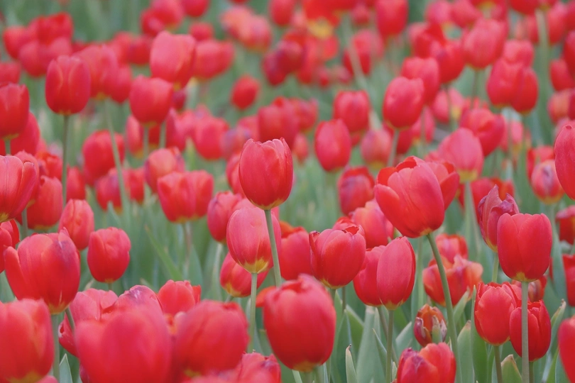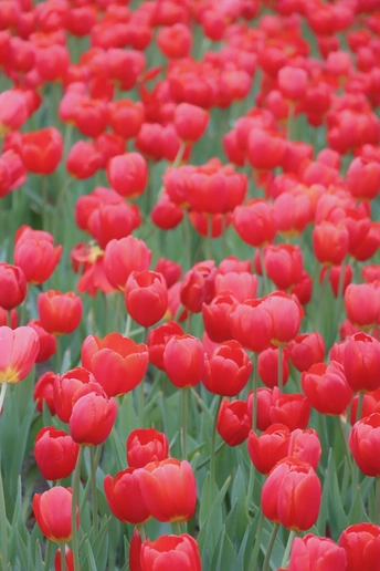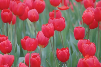 红色郁金香一直是真爱的真正宣言,它的黑色中 心显示着热情燃烧的心, 红色的郁金香热情如火, 给人以一种火热的感觉,所以适合表白, 热恋的时候送给对方