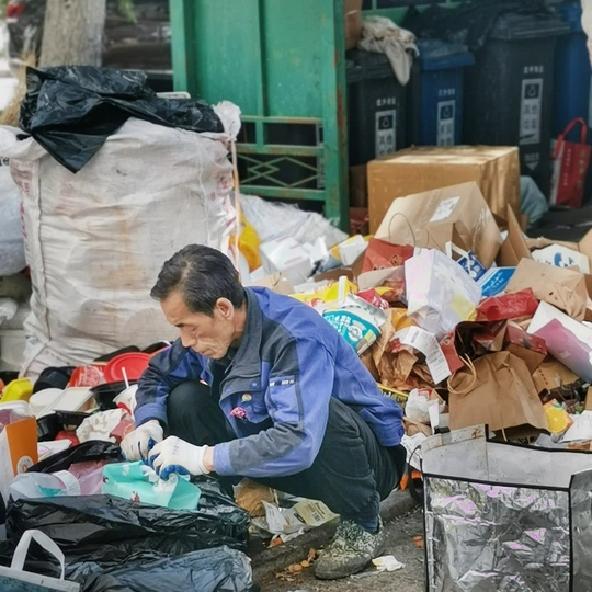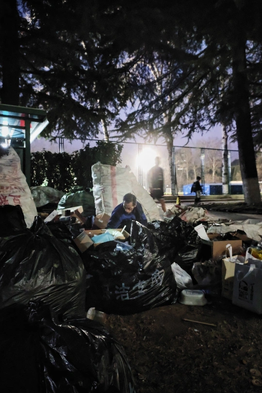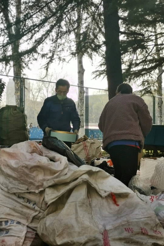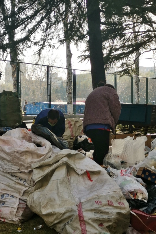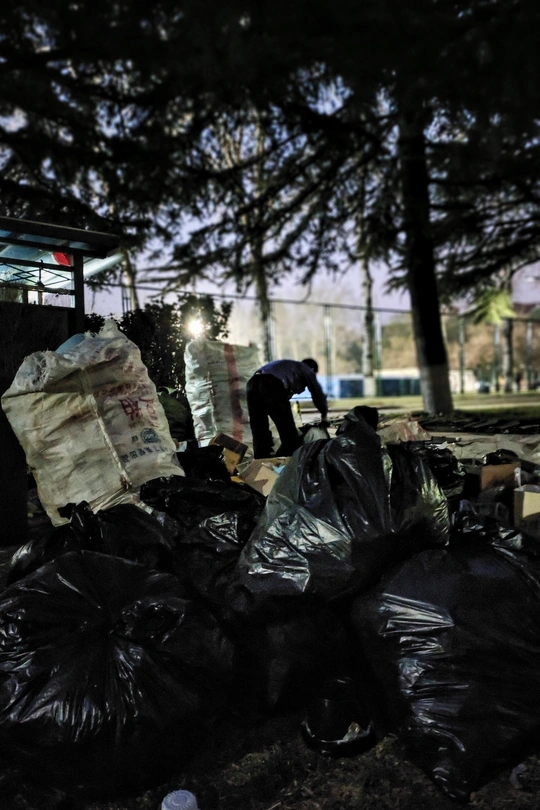 这是宿舍楼前的垃圾清洁工人,一对中年夫妇,年纪约在50岁上下。 组图图片记录下了他们繁忙工作中再平凡不过的一天。从早上8点到晚上9点,他们一直在与各色各样的垃圾打交道。经常穿蓝色工作服的阿伯承担了绝大部分工作量,他工作时会叼着一支烟,经常皱着眉头。阿姨身体不是很好,她腰有“毛病”,所以往往只是下午来帮阿伯干活。 学生产生垃圾的速度是惊人的,每天都有数不清的外卖包装被源源不断地送过去。更有甚者,还有水果皮、鼻涕纸等污秽之物。而这些都只是由这两位上了年纪的老人来默默承担。 我一直很内疚,但没法帮什么,只能自己做好垃圾分类再拿下去,给他们减轻一些工作量。 拍摄图1时阿伯笑着说他有什么好拍的,我说阿伯你工作起来很帅。他有些不好意思地笑了笑,便继续工作了。