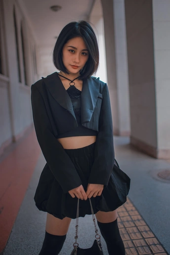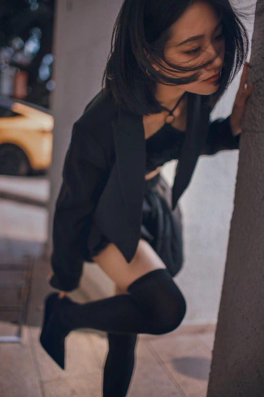 春天广州珠江边上的午后的阳光,没有秋天的温暖,但又夏天没侵略性,配合飒气的裙装+绝对领域长筒袜+高跟鞋。一切都那么刚刚好,加上 cat 的细腻眼神,舒服! 模特:cat